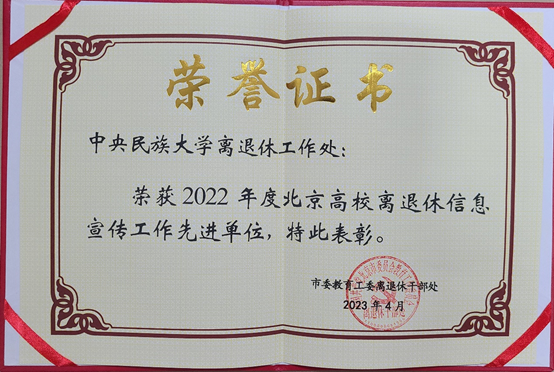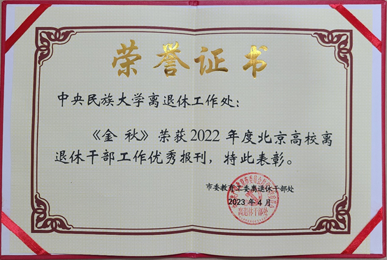 近日,在北京高校离退休工作部门负责人培训会议上,学校离退休工作处、离退休教职工党委荣获2022年度北京高校离退休干部信息宣传工作先进单位,部门刊物《金秋》荣获2022年度北京高校离退休干部工作优秀报刊并受到表彰。据统计,2022年度共有35所高校离退休工作部门和26本报刊获得殊荣。
