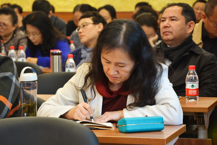 国家民委副主任、党组副书记刘慧传达了《中国共产党章程(修正案)》,中纪委驻国家民委纪检组组长周小莹传达了十八届中央纪委工作报告的主要精神,国家民委副主任石玉钢谈了参加党的十九大的心得体会,中国民族语文翻译局党委书记兰智奇汇报了参与党的十九大民族语文翻译工作的心得体会。(来源:民大官网;大学生记者团记者 何世琪/摄)