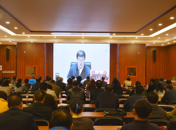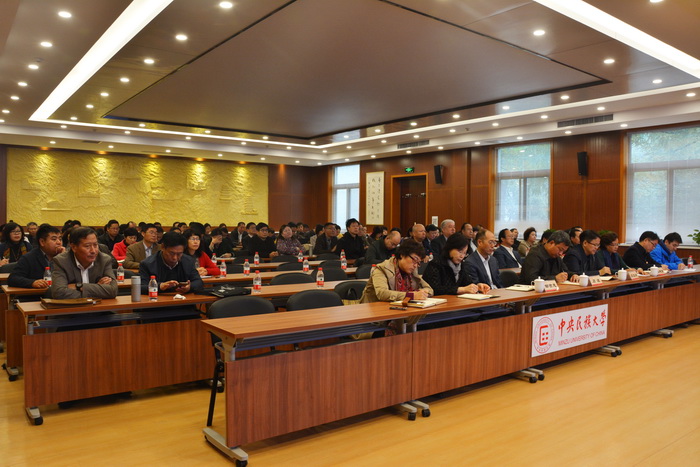国家民委专职委员、校党委书记张京泽在国家民委主会场参加会议。校领导刀波、石亚洲、邹吉忠、张艳丽和全校副处级以上领导干部在学校知行堂分会场参加会议。