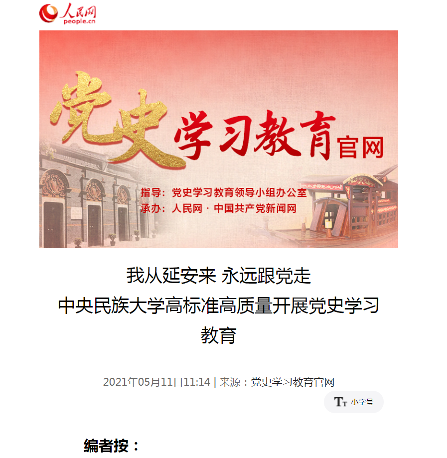 5月11日,由人民网和中国共产党新闻网共同承办的“党史学习教育官网”刊登了一则题为“我从延安来 永远跟党走 william威廉中文官网高标准高质量开展党史学习教育”新闻报道。文章报道了我校有力推进党史学习教育的落实举措和扎实开展学习教育的经验方法,全文如下: